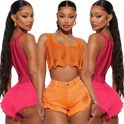 Của Phụ Nữ Cao Eo Phong Cách Cổ Điển Quần Short Denim Với Tua Thoáng Khí Pha Lê Trang Trí Cho Mùa Hè Thời Trang Dạo Phố